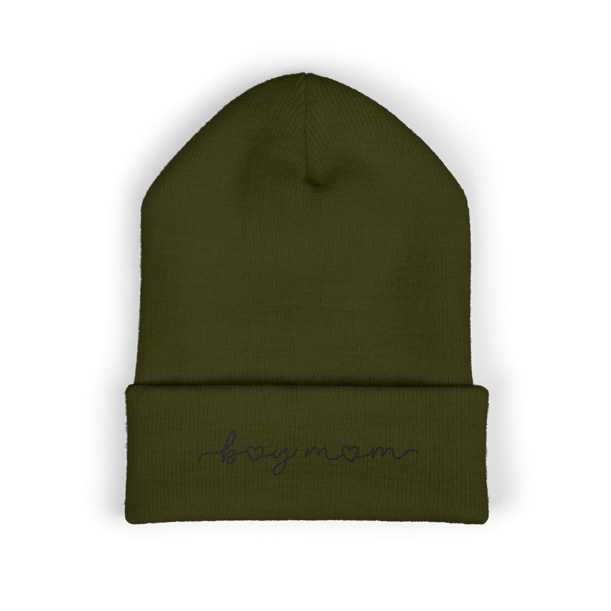 - Embroidered "Boy Mom" Cuffed Beanie — available in 9 colors